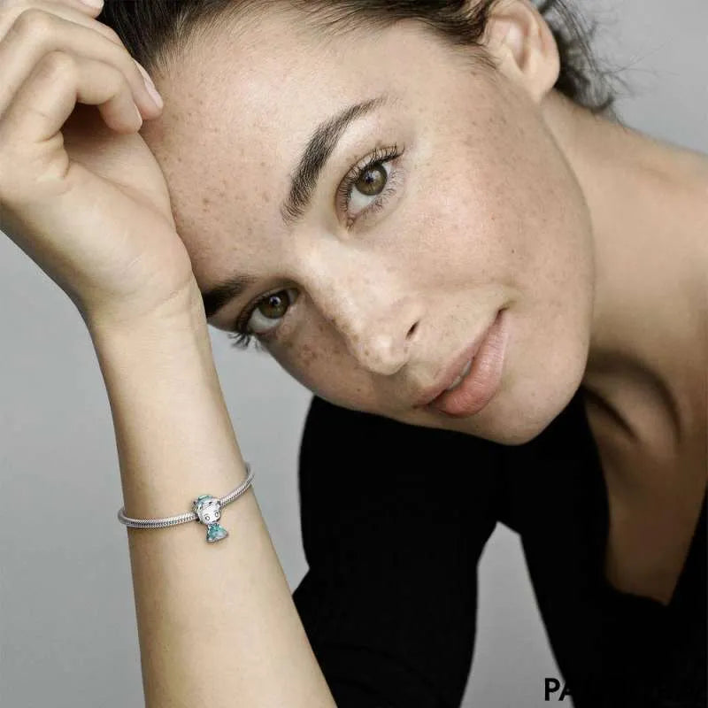 Embrace your inner royalty with the enchanting Cinderella Charm. Crafted from high-quality sterling silver, this charm features finely etched facial details and stunning blue hand-painted enamel, beautifully highlighting Cinderella's dress, headband, and earrings. With its charming design inspired by Cinderella's upbeat spirit and signature style, this charm is a delightful reminder of your treasured memories. Elevate your everyday look with this iconic piece, making it an essential addition to any collection that exudes a playful touch of elegance.